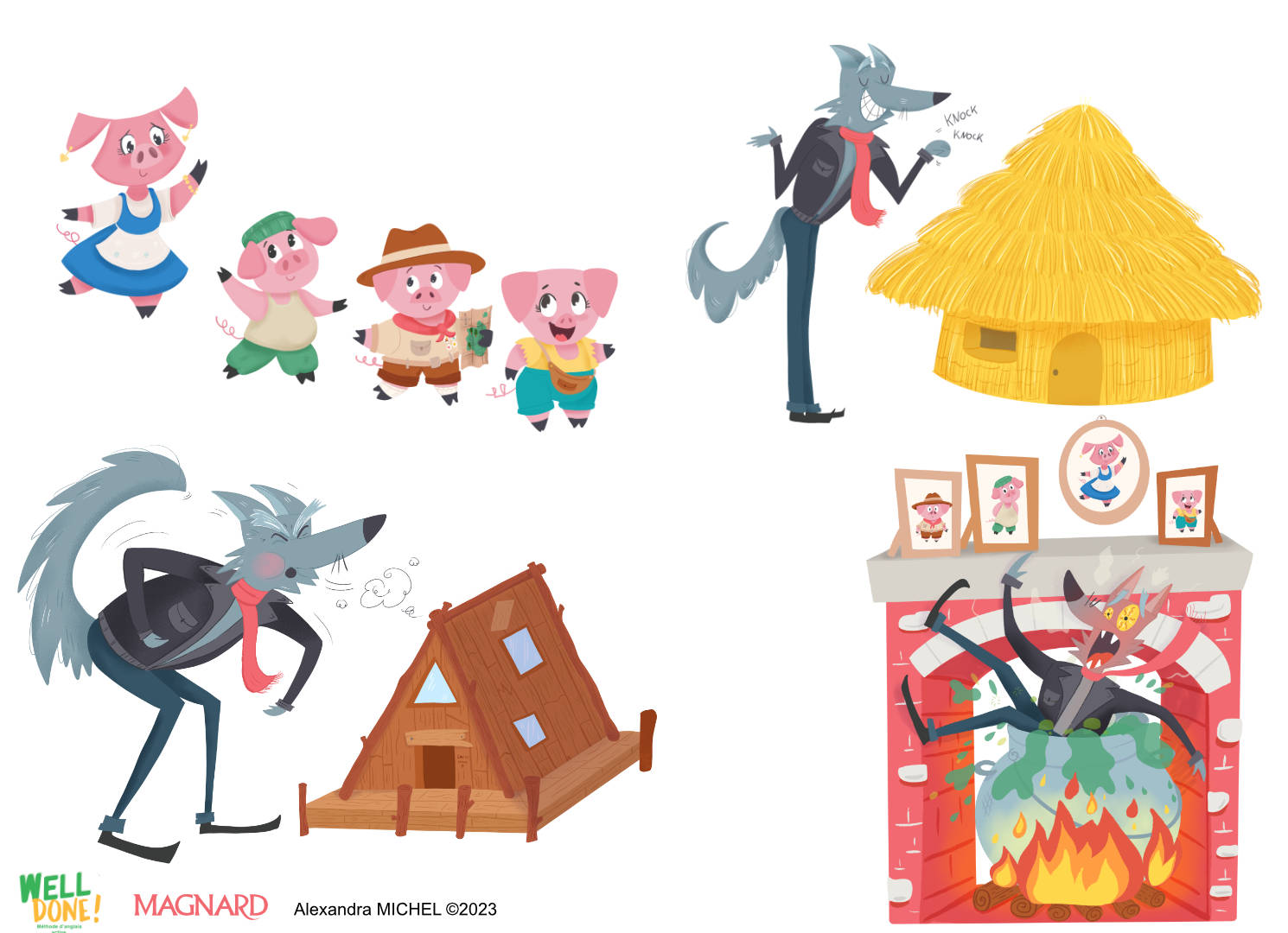 Well Done - Editions Magnard - <br>illustrations du conte les 3 petits cochons.