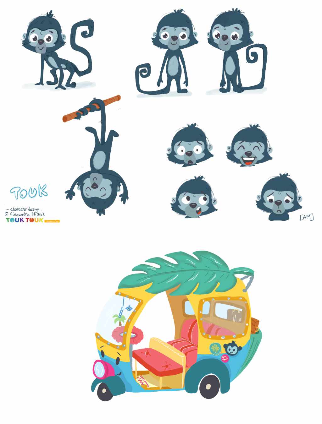 Character design des 3 Mascottes du magazine : Tim, Gaïa et Touk le petit singe,